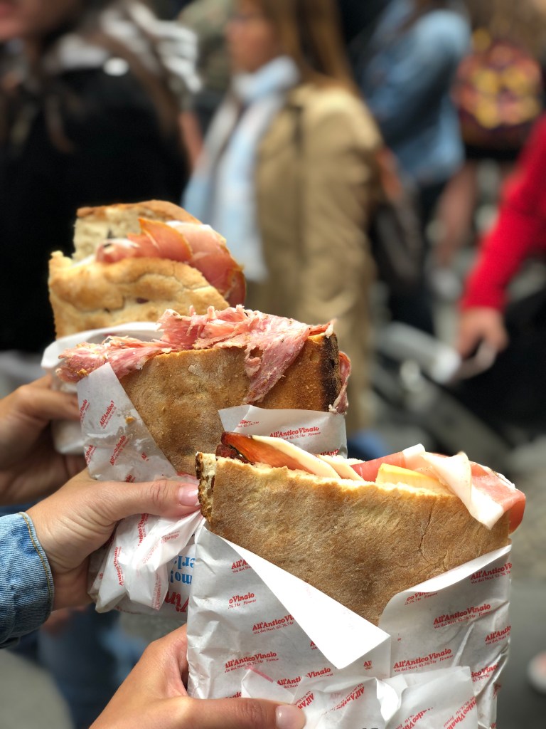 Once I arrived I found Maylin and Cara on the platform and away we went towards the hotel. We checked in, changed and headed out for some famous sandwiches Maylin heard about before we got here. THE HYPE WAS REAL. So, this place has 4 storefronts of the exact same menu right next to each other simply to accommodate the demand. It’s insane. Hahaha Every sandwich is 5 euro, doesn’t matter what you get. The name is Al Antico Vinaio-Panini. We ordered three different sandwiches and I ordered the boss, appropriately named. Ha I tried Cara and Maylin’s which were great but I enjoyed mine the most. Ordering here is kind of chaotic, but just go with it. Hahaha You will get through it with an AMAZING sandwich. We have already made plans to go back. π