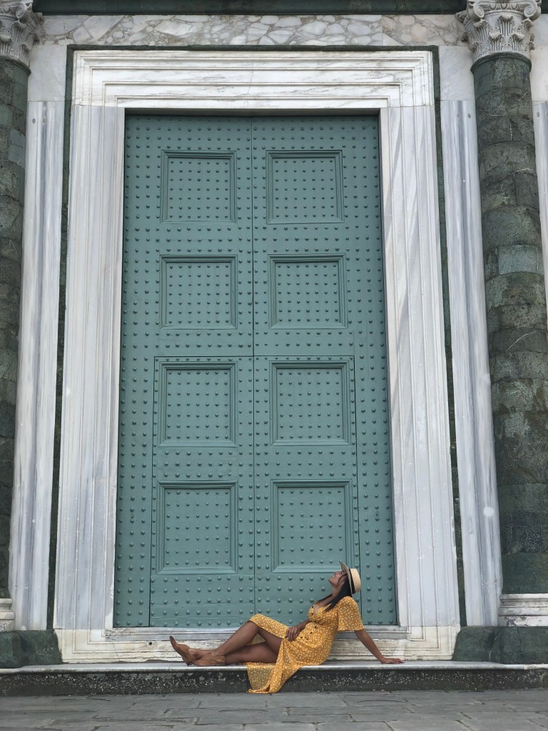 There is a church up even higher from the plaza that we walked over to and ended up having a mini photo session at because the doors were just so stinking cute!! The view only got better up there as well. π