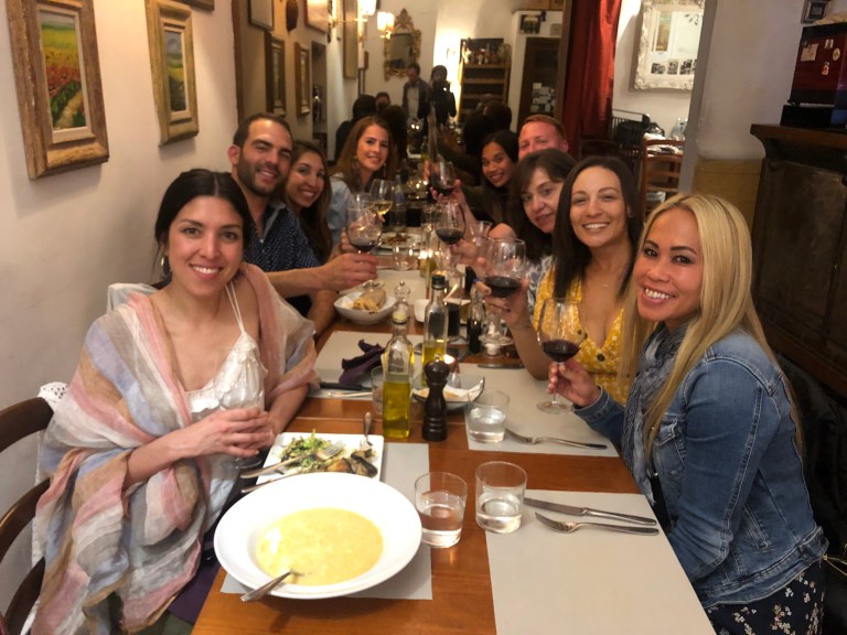 Next Carolyn and Travis (The Newlyweds!) arrived to town and had us and other wedding guests that traveled to Florence over for charcuterie and drinks before we went out for a group dinner. So we met them at their place which has a balcony in the center of a Piazza and a gorgeous church at the end. So cute!