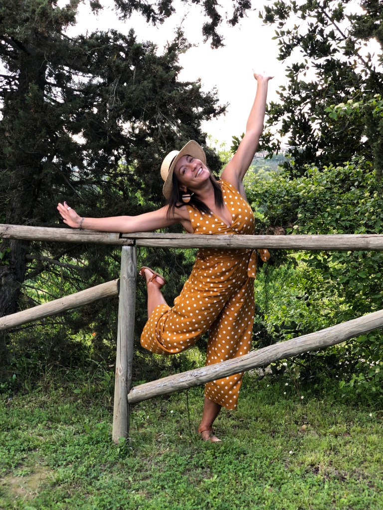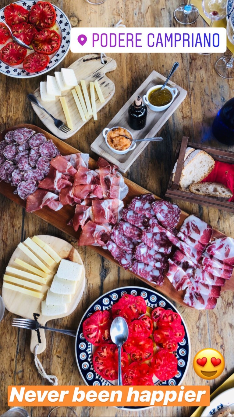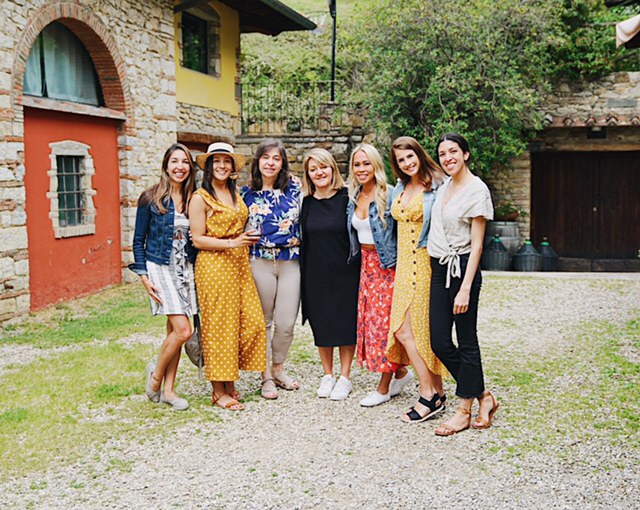 Arriving to Podere Campriano winery I was pretty giddy with excitement purely just on my surroundings being as breathtaking as they were. Elena was there to greet us upon arrival and she was so incredibly warm and friendly! She is pictured below in a black dress between all us girls. 🙂