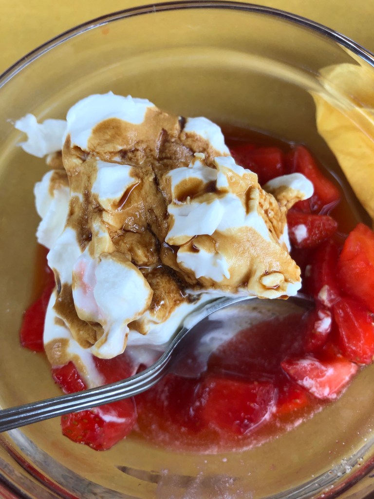 Last course was dessert. Local strawberries with fresh whipped cream and their mosto cotto. 🤤 I didn’t know strawberries could be this flavorful.